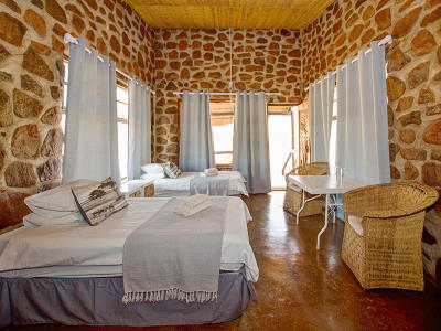 Brandberg White Lady Lodge has a wide variety of affordable accommodation to suit all travellers. There are Chalets, Rustic Tents and Lodge Rooms. There is also camping available under huge camelthorn trees. Please contact us and we will guide you with choosing the best option for you. They also have a restaurant and a swimming pool to cool you off after a drive to see the rock paintings and etchings.