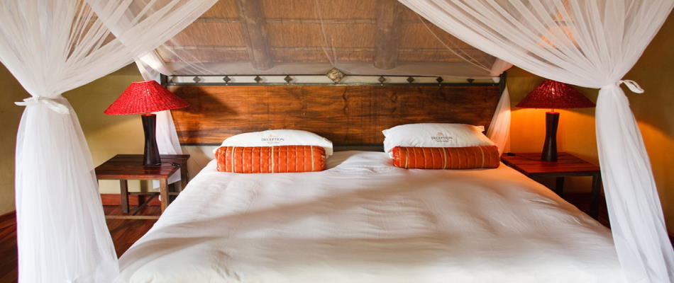 Six chalets offer twin-bedded accommodation, while the remaining two chalets are family rooms with two interleading rooms each. The chalets at Deception Valley Lodge in Botswana are luxurious, each offering an en suite Victorian bathroom, outside shower, lounge, ceiling fan, mosquito nets, mini-bar, bathrobes, shaving plugs and hairdryer.