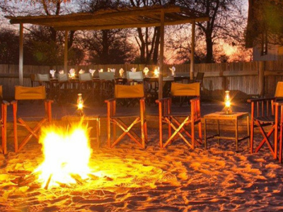 The chalets at Deception Valley Lodge are built on stilts and connected to the main complex by means of wooden walkways. The main complex at Deception Valley Lodge near the Central Kalahari Game Reserve comprises a bar, lounge, dining room, library and curio shop, while you can watch the action at the nearby waterhole from the viewing deck. A swimming pool provides welcome relief from hot days. At night, the campfire the boma area of Deception Valley Lodge is a strong attraction.