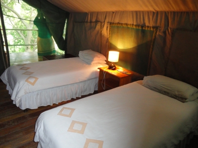 The quartet of safari tents at Kwa Nokeng Lodge in Botswana, all facing the river, provide twin-bed lodgings for two guests. Adjacent ablution facilities cater to your convenience. Electricity graces the safari tents.