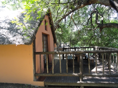 Kwa Nokeng Lodge in Botswana also boasts five charming thatched chalets, with four overlooking the river. All chalets offer en suite comfort, air conditioning, and accommodations for two adults (twin beds) and two children (bunk beds).