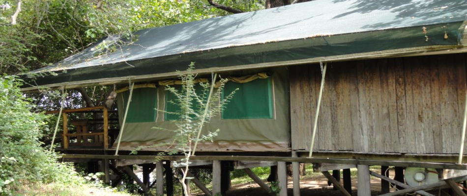 Kwa Nokeng in Botswana presents an array of lodgings: a campsite, furnished safari tents, thatched chalets, air-conditioned luxury tents, and opulent self-catering en suite river cottages (equipped with DSTV).