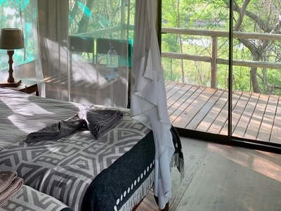 The en-suite self-catering chalets are ideal for a couple, but can accommodate children on request. The chalets have twin beds, mosquito nets, 12V solar lighting, hot water, and a fully equipped kitchen area with gas stove. Each chalet has a wooden deck overlooking the Kwando River where you can sit back and relax with a drink while you watch the sun go down. Sharwimbo is self-catering and you will need to take all your own supplies and drinks.