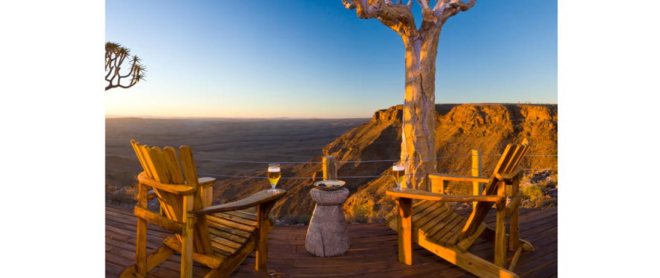 The Fish River Lodge in Namibia offers a number of scenic canyon drives so that guests can experience the numerous wonders of the Canyon. Their sundowner drive, when you can watch the glowing sunset while enjoying a sundowner, is enjoyed by many guests.