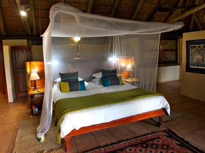 Individually styled and tastefully furnished, these reed, brick and thatched chalets, each have a private bathroom and secluded, outside deck. Generous spacing between chalets ensures total privacy. The lodge accommodates a maximum of 24 guests in 12 chalets.