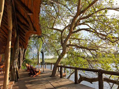 The thatched dining, lounge and bar areas open onto spacious, wooden decks, affording uninterrupted views over the Kwando and its floodplains. Wildlife can frequently be observed from these vantage points.