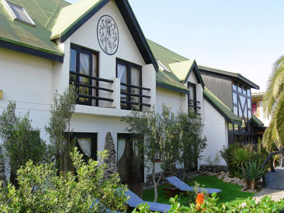 Sam’s Giardino in Swakopmund, Namibia, offers 5 twin-bedded rooms, 2 double-bed rooms, and one secluded honeymoon room (with a king size bed). Each room is en suite, and equipped with direct dial telephone, hair dryer, safe, heater and small lounge area. Thoughtful details include anti-allergic linen. The rooms are on 2 floors, with 4 rooms on each floor. Room service runs from 7:00 to 24:00 daily.
