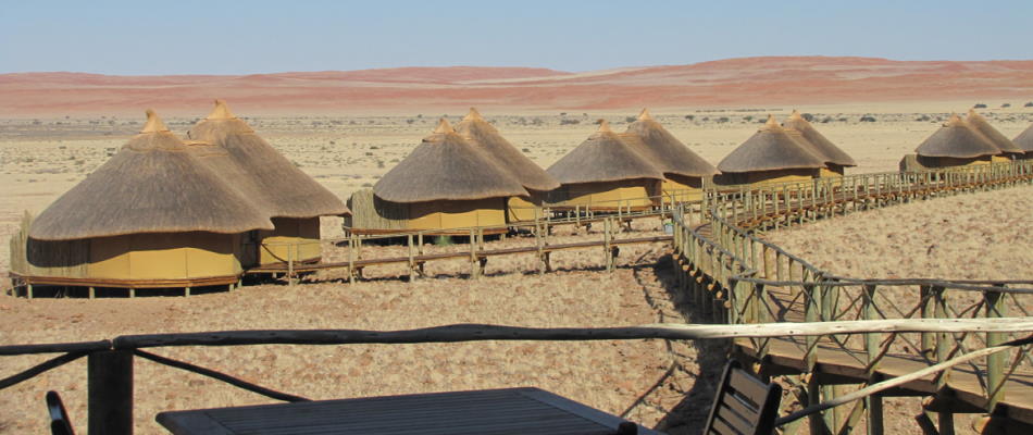 Built in an environmentally sensitive manner, primarily from wood, canvas and thatch, in an attractive ‘afro-village’ style,Sossus Dune Lodge offers guests an evocative and life changing experience.